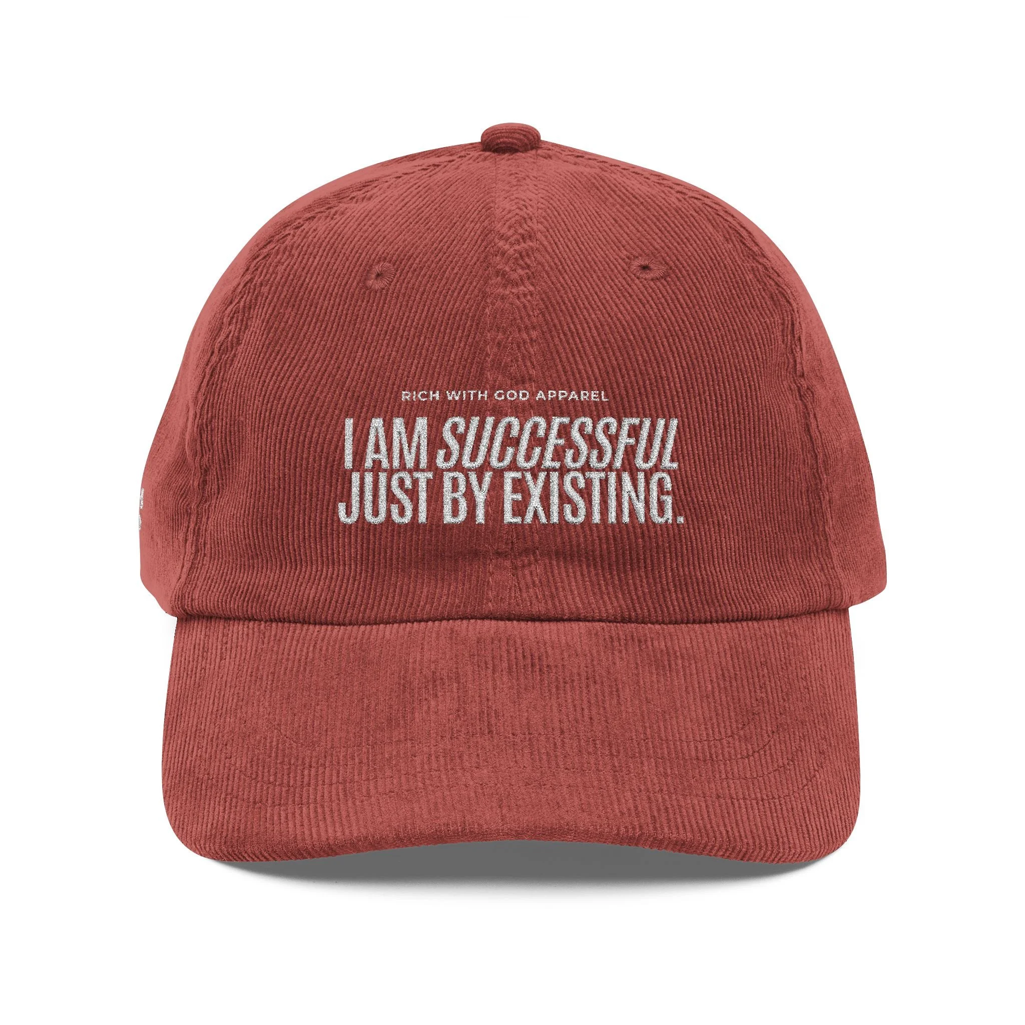 This warm corduroy cap from Rich With God Apparel radiates quiet confidence and grounded energy. Crafted from soft-ribbed cotton in a vintage rust tone, it features a curved brim and a small embroidered declaration across the front: “I am successful just by existing,” a gentle reminder of your God-given worth and purpose. The unstructured six-panel crown creates a relaxed, laid-back silhouette, while the adjustable strap with gold-toned buckle ensures a comfortable fit. A cotton twill sweatband keeps long wear pleasant, making this cap perfect for slow city mornings, weekend markets, or any day you want a subtle affirmation close at hand.