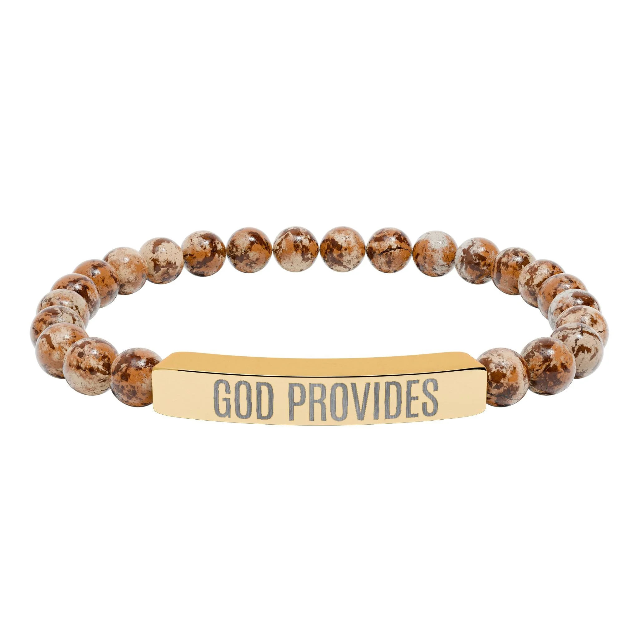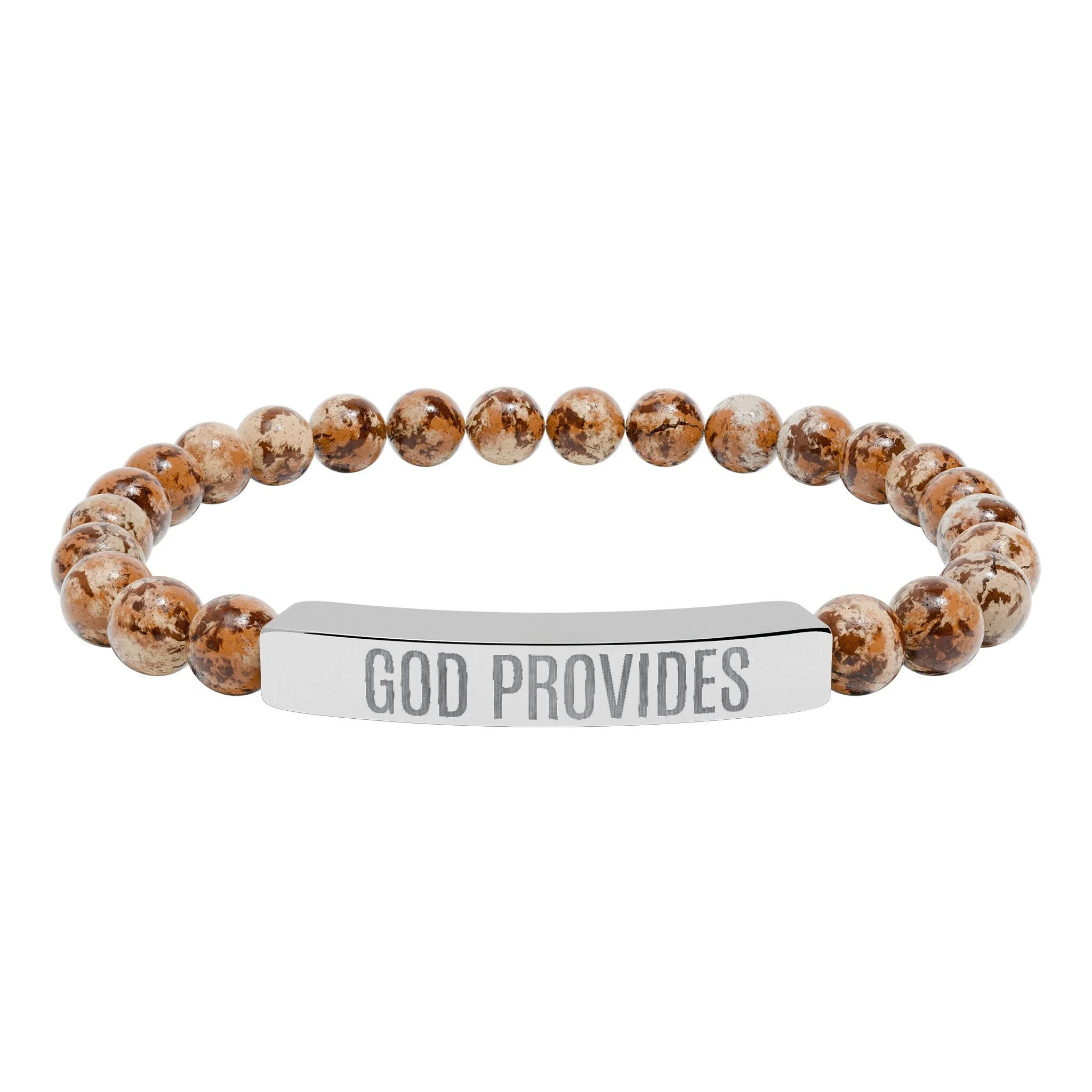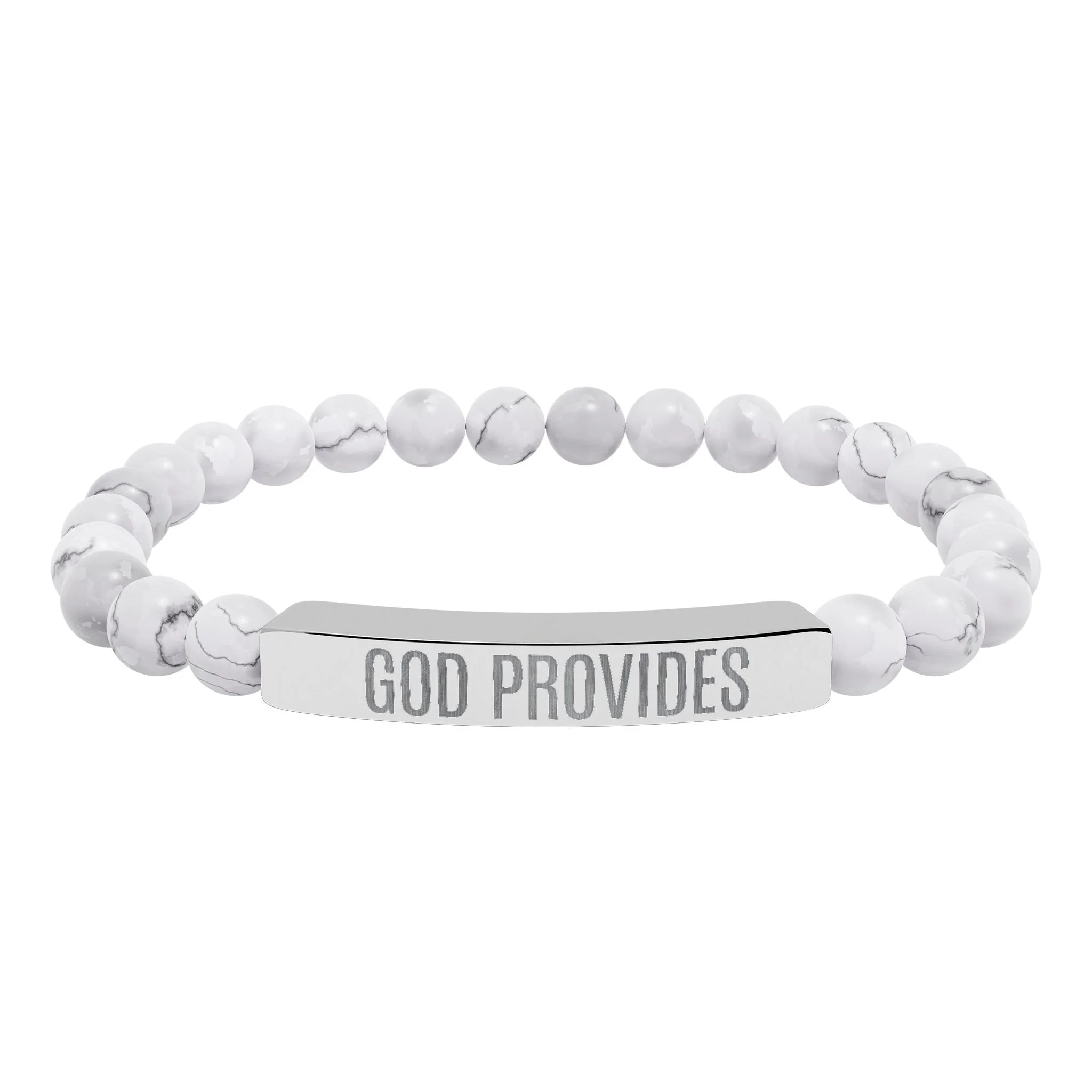 “GOD PROVIDES” is more than an engraving—it’s a bold declaration of faith, a direct statement of knowing that God is the source of all provision. Part of the Rich With God Apparel Collection, this natural stone stretch bracelet embodies calm, centered confidence. Smooth pastel or marble-white stones are strung on durable elastic and paired with a sleek stainless steel bar engraved with “GOD PROVIDES.” Sitting close to the wrist, the subtle engraved plate catches the light while the stones offer an earthy, grounding feel. Wear it alone for quiet reflection or layer it with other bracelets to create a stack that radiates hope, trust, and gratitude. Each bracelet arrives in a white gloss jewelry box with non-tarnish cotton for safe keeping.