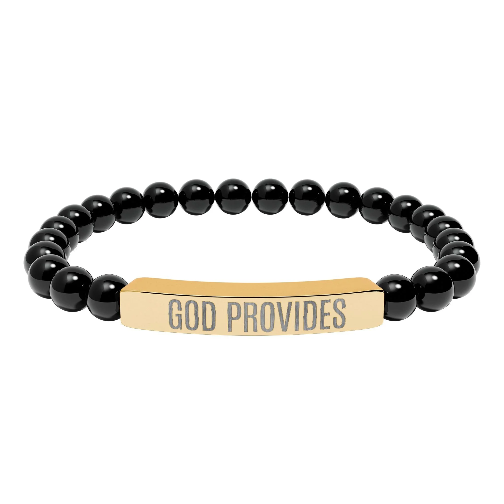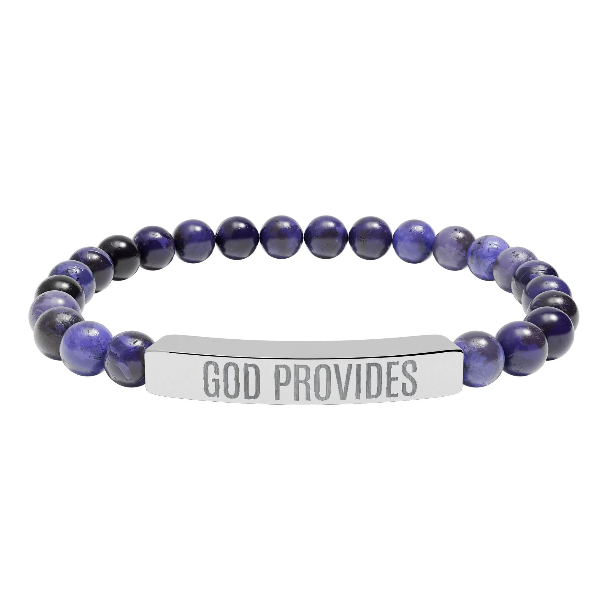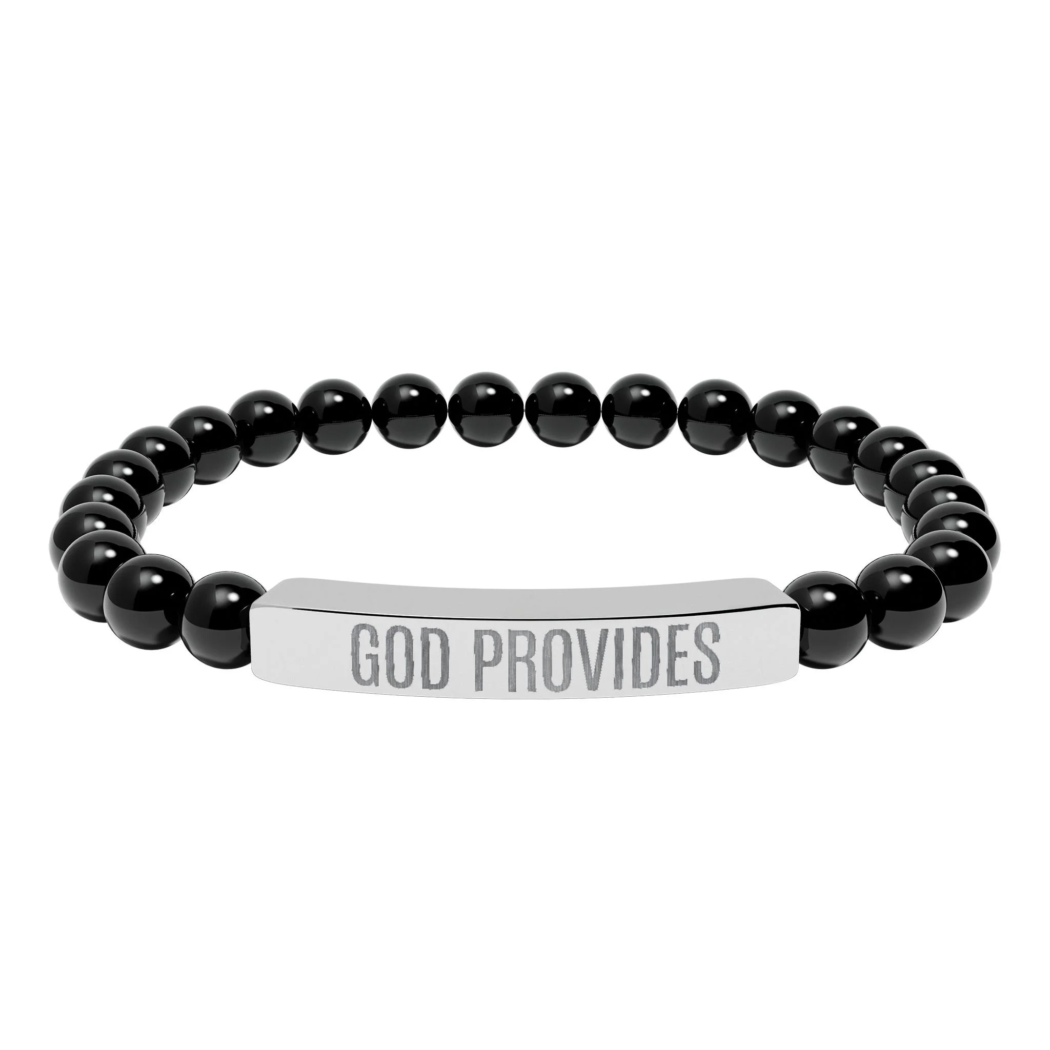“GOD PROVIDES” is more than an engraving—it’s a bold declaration of faith, a direct statement of knowing that God is the source of all provision. Part of the Rich With God Apparel Collection, this natural stone stretch bracelet embodies calm, centered confidence. Smooth pastel or marble-white stones are strung on durable elastic and paired with a sleek stainless steel bar engraved with “GOD PROVIDES.” Sitting close to the wrist, the subtle engraved plate catches the light while the stones offer an earthy, grounding feel. Wear it alone for quiet reflection or layer it with other bracelets to create a stack that radiates hope, trust, and gratitude. Each bracelet arrives in a white gloss jewelry box with non-tarnish cotton for safe keeping.