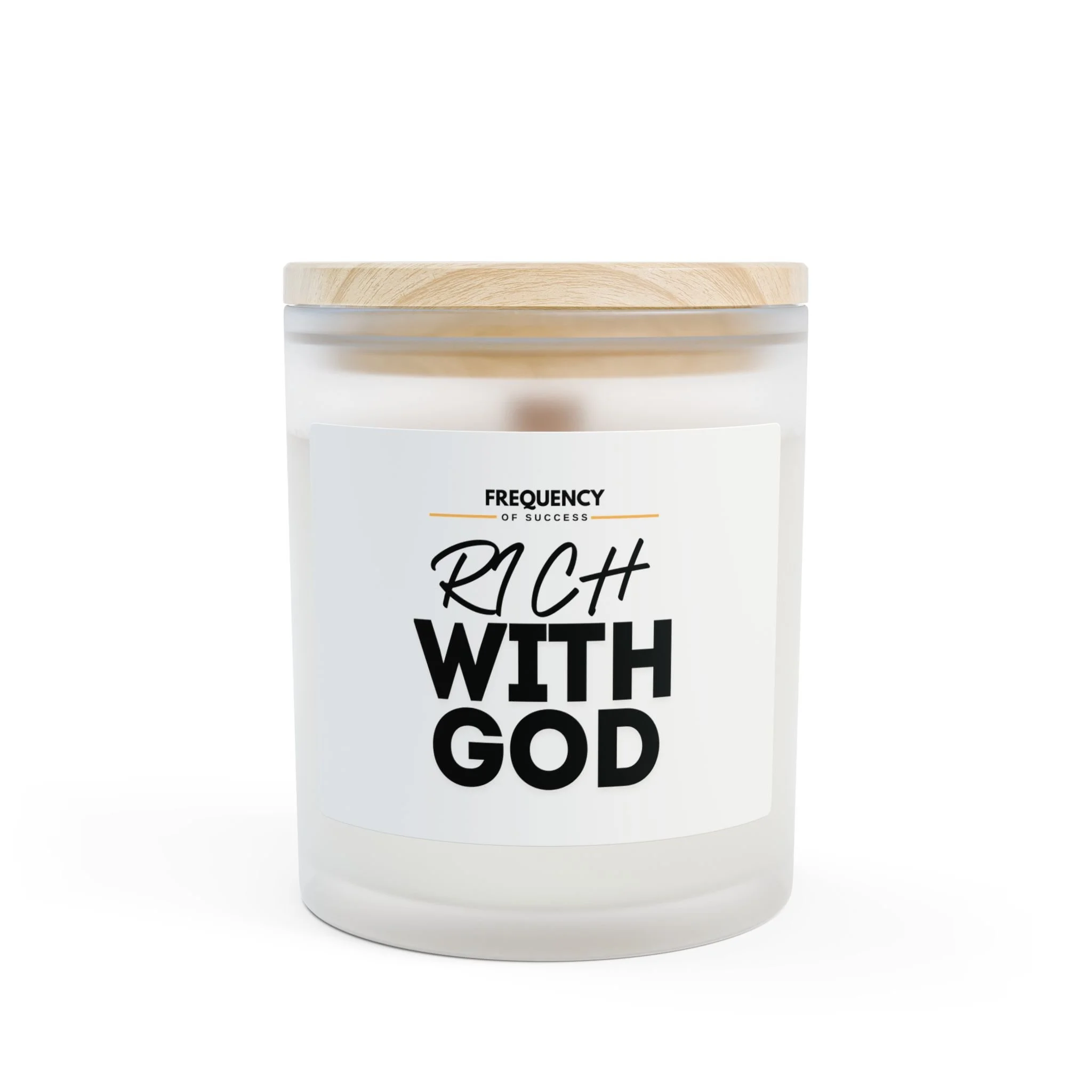 Frosted Glass Candle — "Rich With God" Inspirational Scented Candle (11 oz)