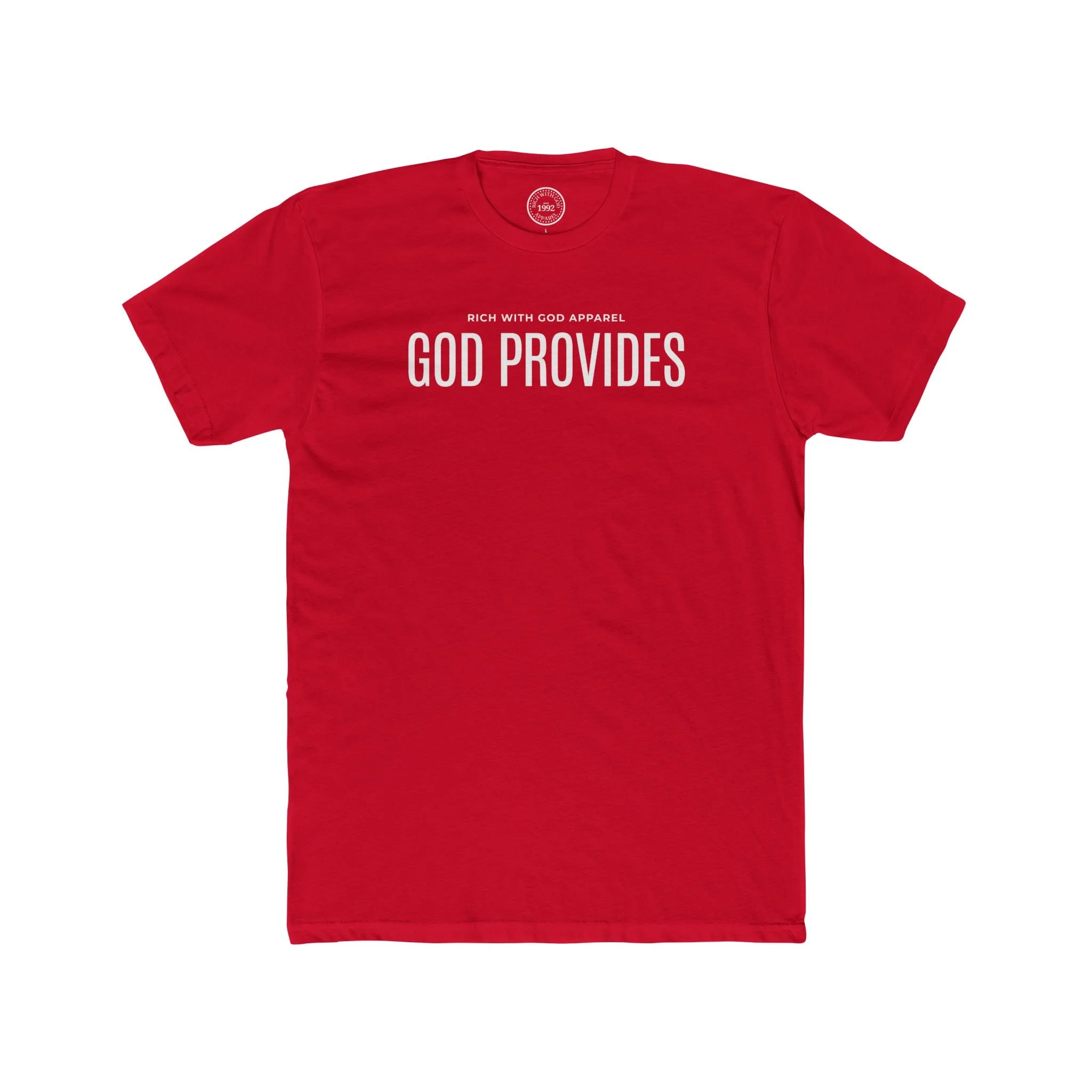 Part of the Rich With God Apparel Collection, this lightweight cotton crew tee is a subtle yet powerful statement of faith. Featuring “God Provides” boldly on the front and the Rich With God logo on the back, it blends effortless style with a meaningful message you can carry anywhere. Whether layered under a jacket, worn solo on warm days, or paired with denim, it’s a versatile piece that lets your faith shine naturally without saying a word.