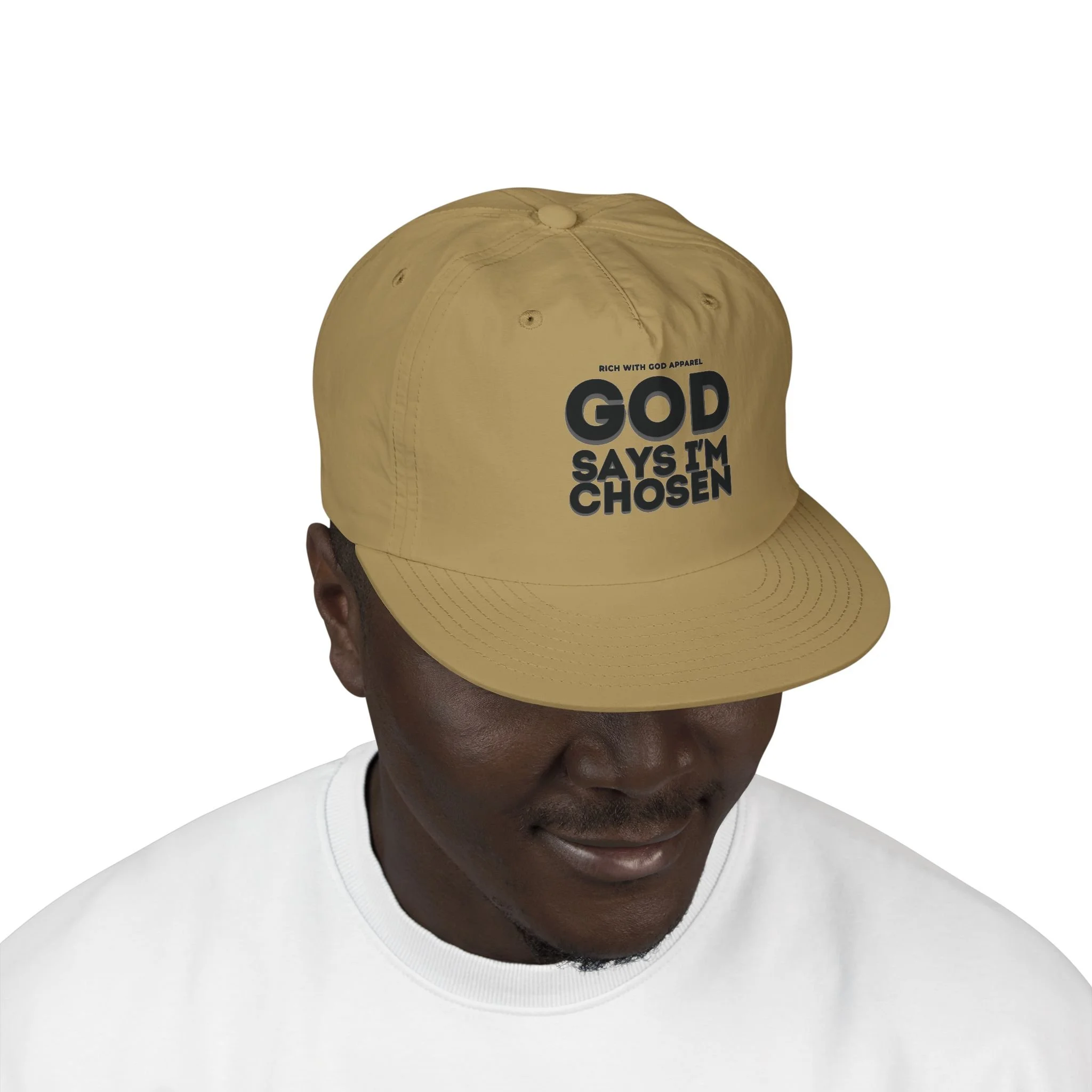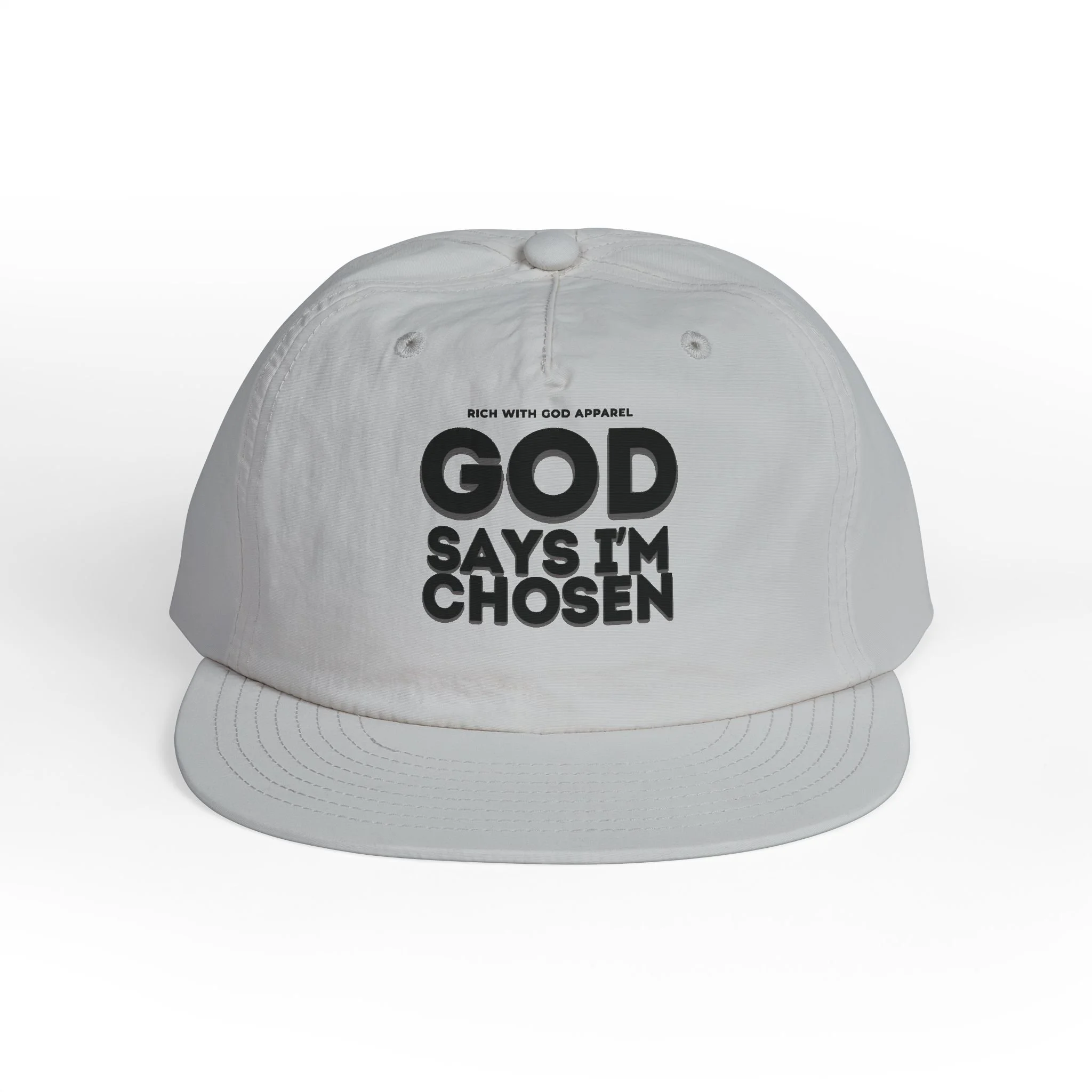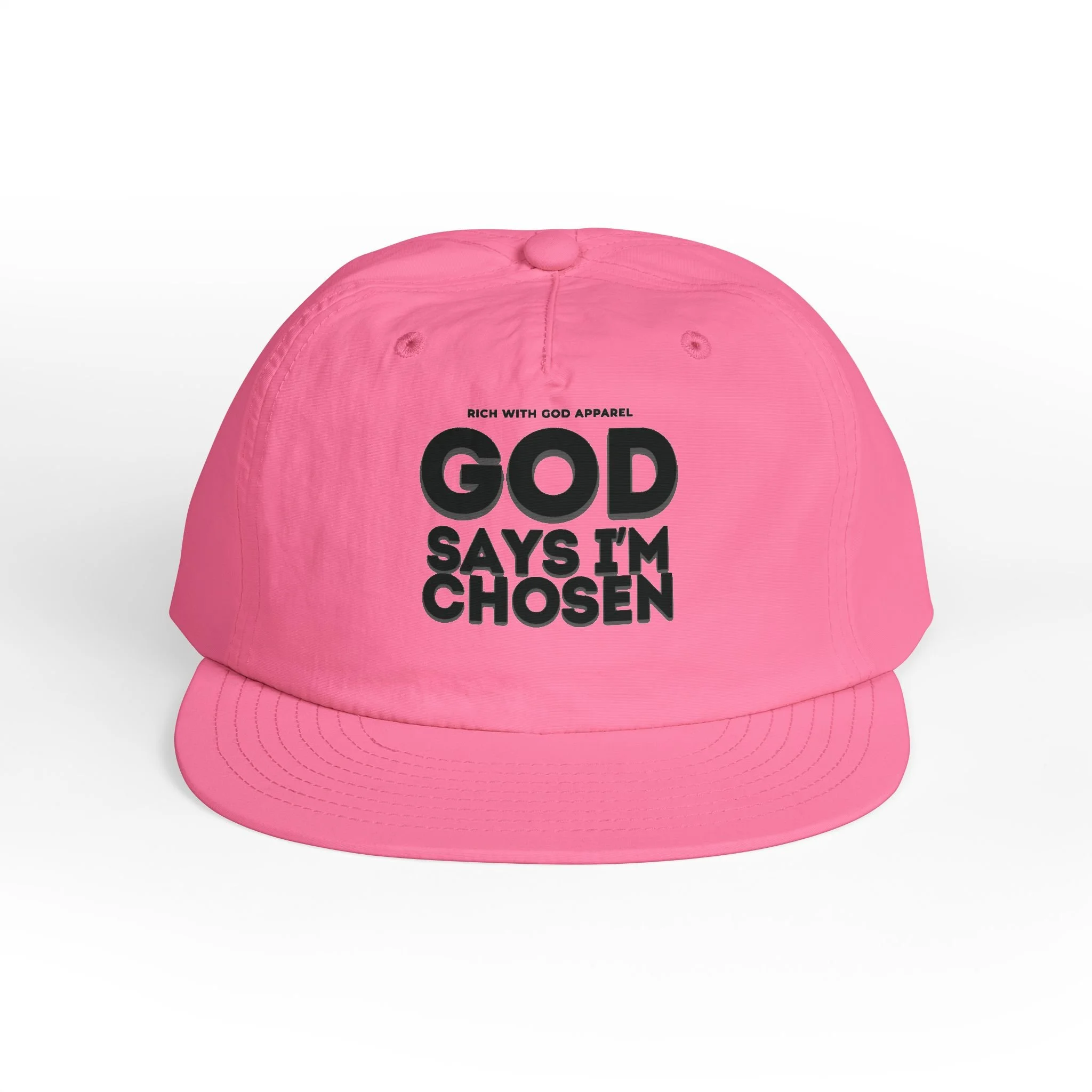 Declare your identity boldly and confidently with the God Says I'm Chosen Surf Cap Snapback. Featuring a clean, hand-stitched front embroidery reading God Says I'm Chosen, this cap serves as a daily reminder of your divine purpose and favor. Perfect for casual outings, prayer walks, or ministry events, it’s faith-forward style that keeps your focus on what truly matters.