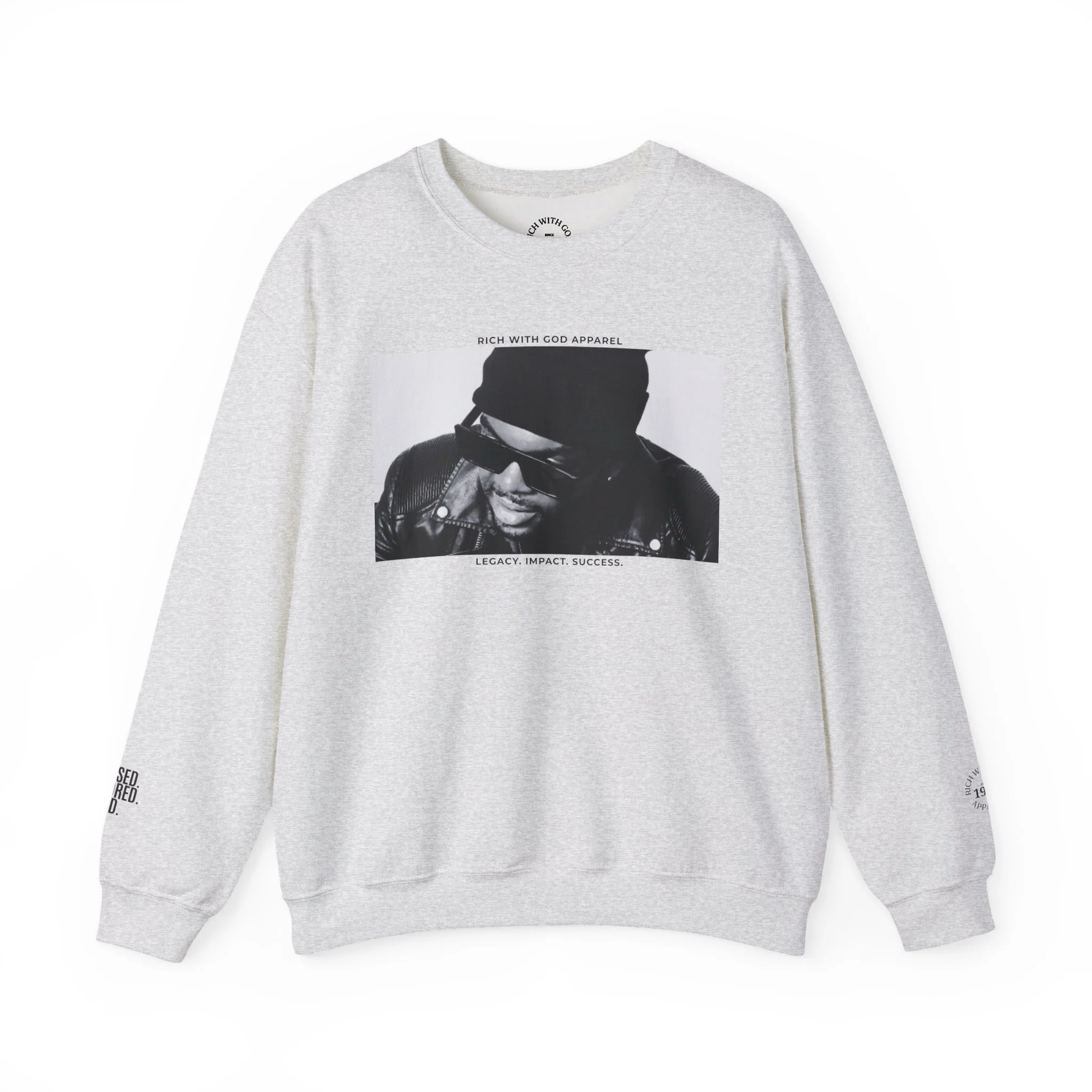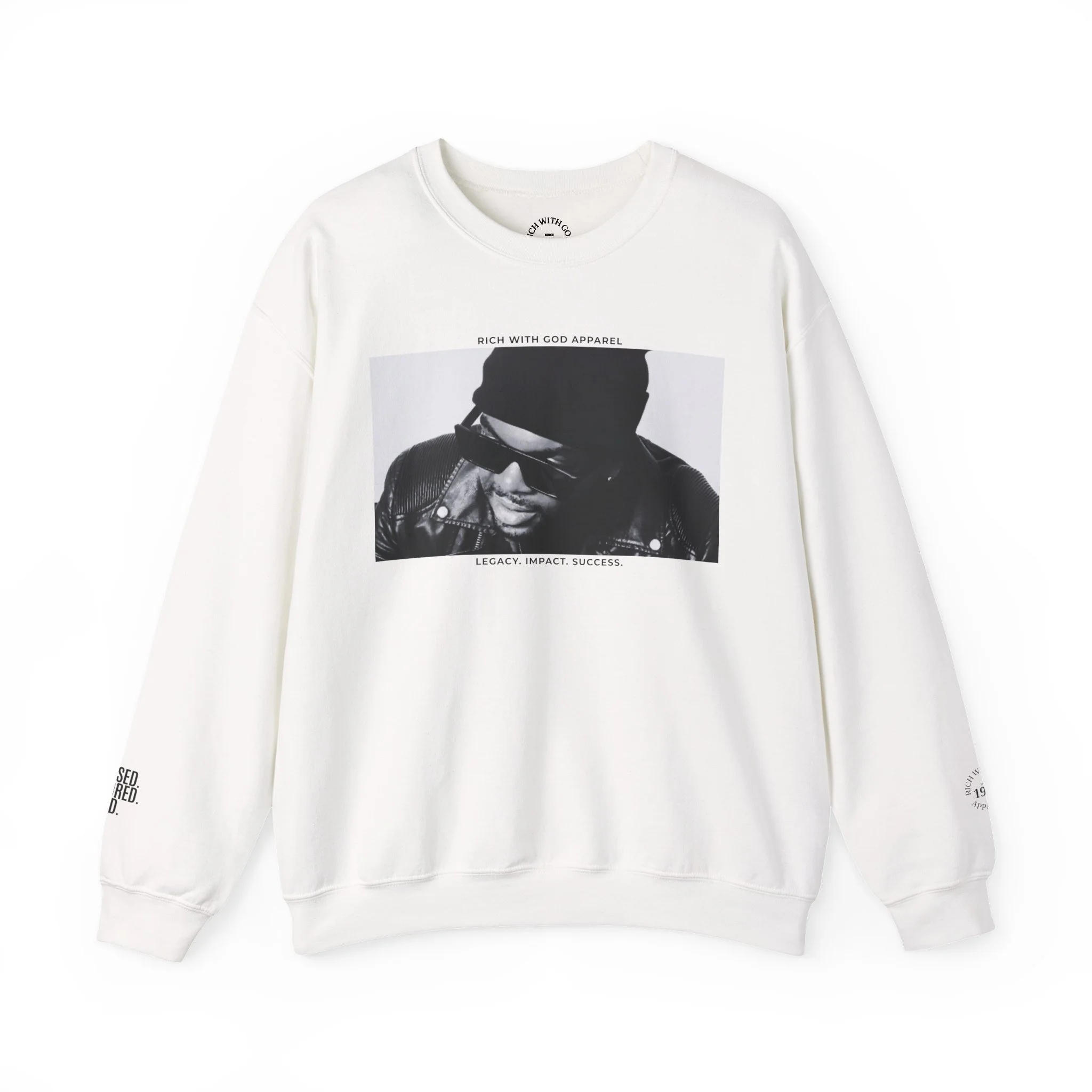 Step into your greatness with the LEGACY. IMPACT. SUCCESS. — Omar Cook Edition Crewneck, a powerful statement piece designed to inspire leaders, dreamers, and world-changers. Featuring the bold phrase “LEGACY. IMPACT. SUCCESS.” and a signature image of Omar Cook on the front, this crewneck embodies purpose, influence, and the journey of becoming your highest self.