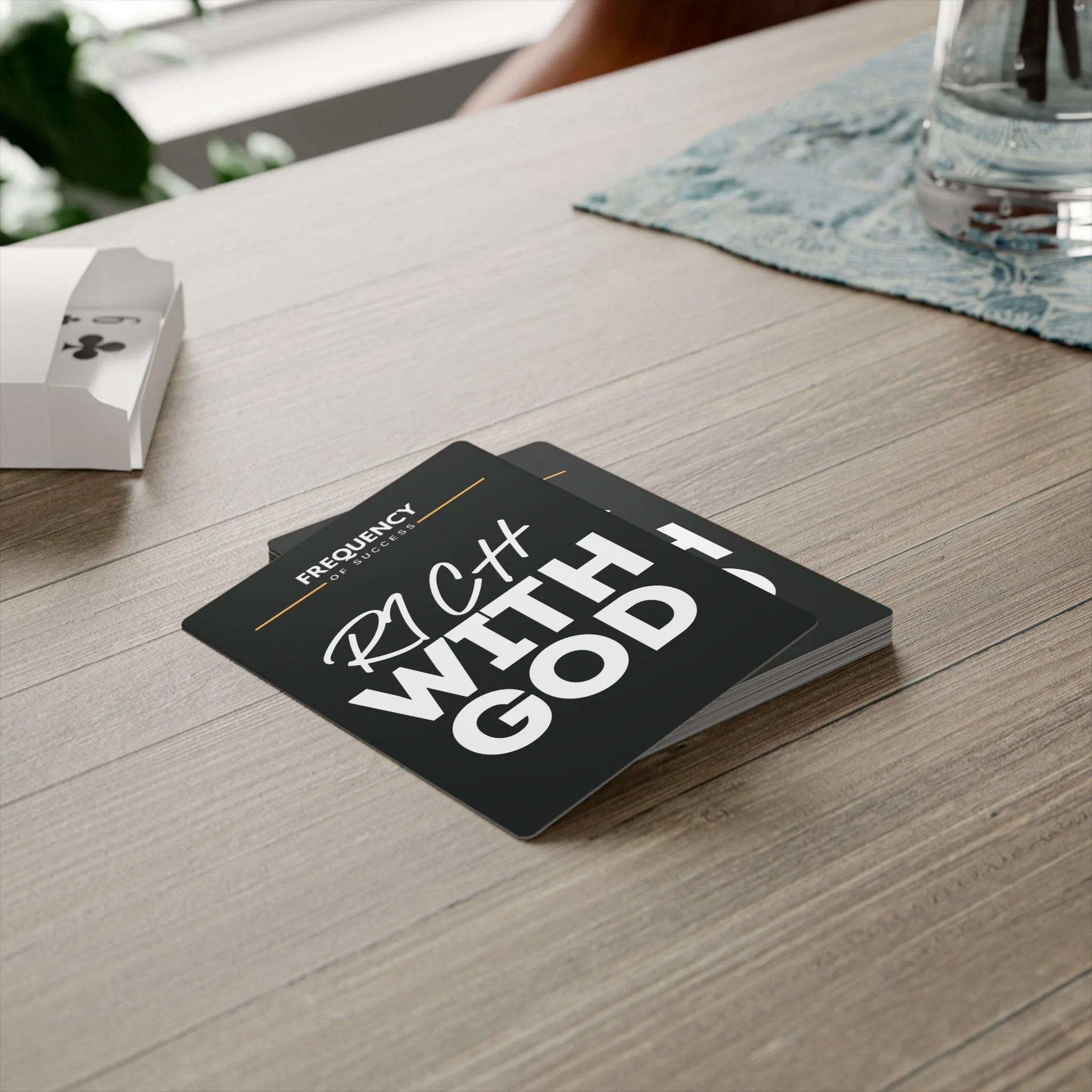 Bring a bold touch of faith to every game with the Rich With God Poker Cards — a deck that reminds you that favor, strategy, and confidence all come from God. Crafted from high-grade 300gsm paper with a glossy, UV-resistant coating, these cards are built to resist cracking, bending, and fading even when the stakes are high. Each deck includes 52 cards and 2 jokers, housed in a clean white box, with the custom Rich With God design printed in crisp, lasting detail on the back. Perfect for poker nights, family gatherings, or gifting, this deck adds a meaningful flair to every shuffle, deal, and victory.