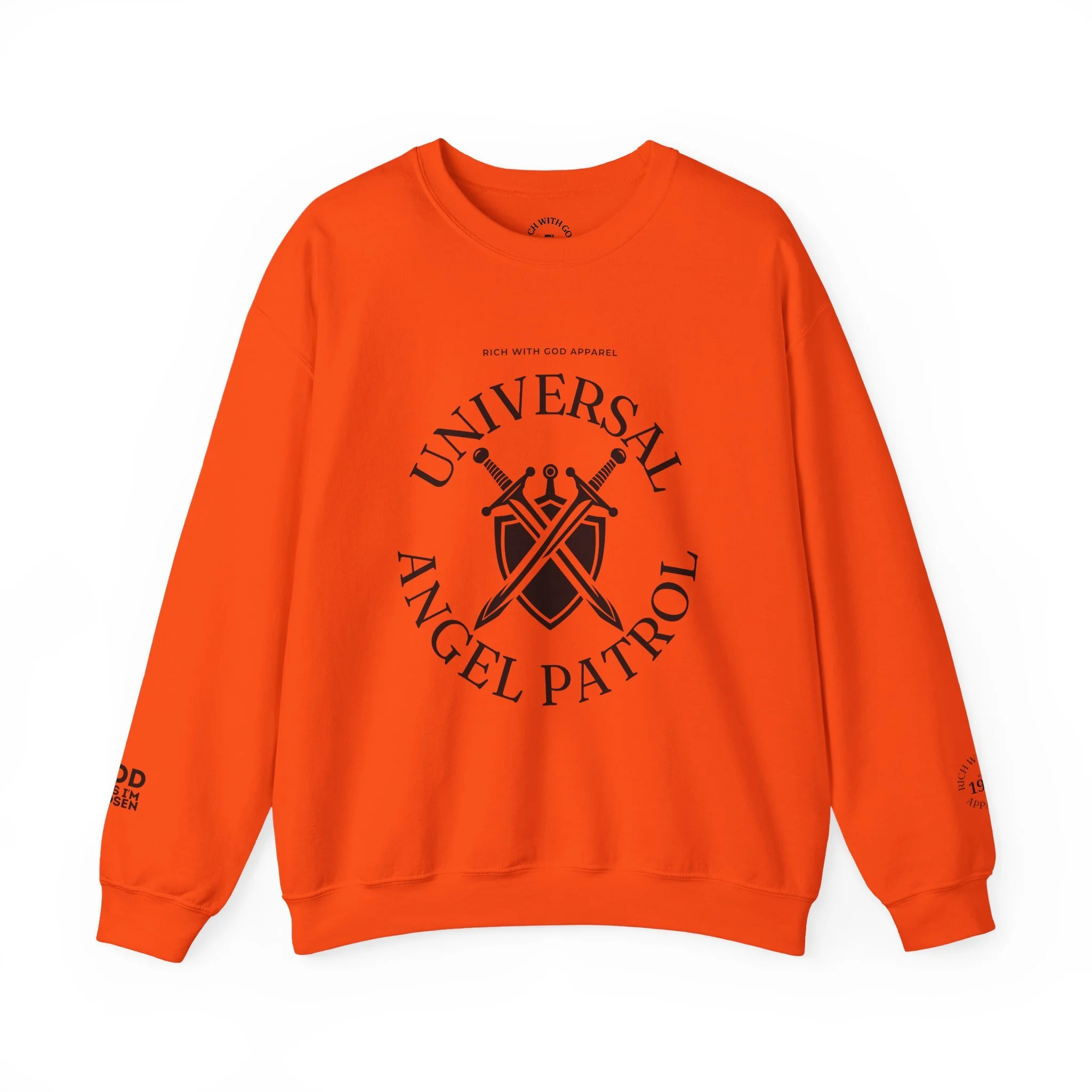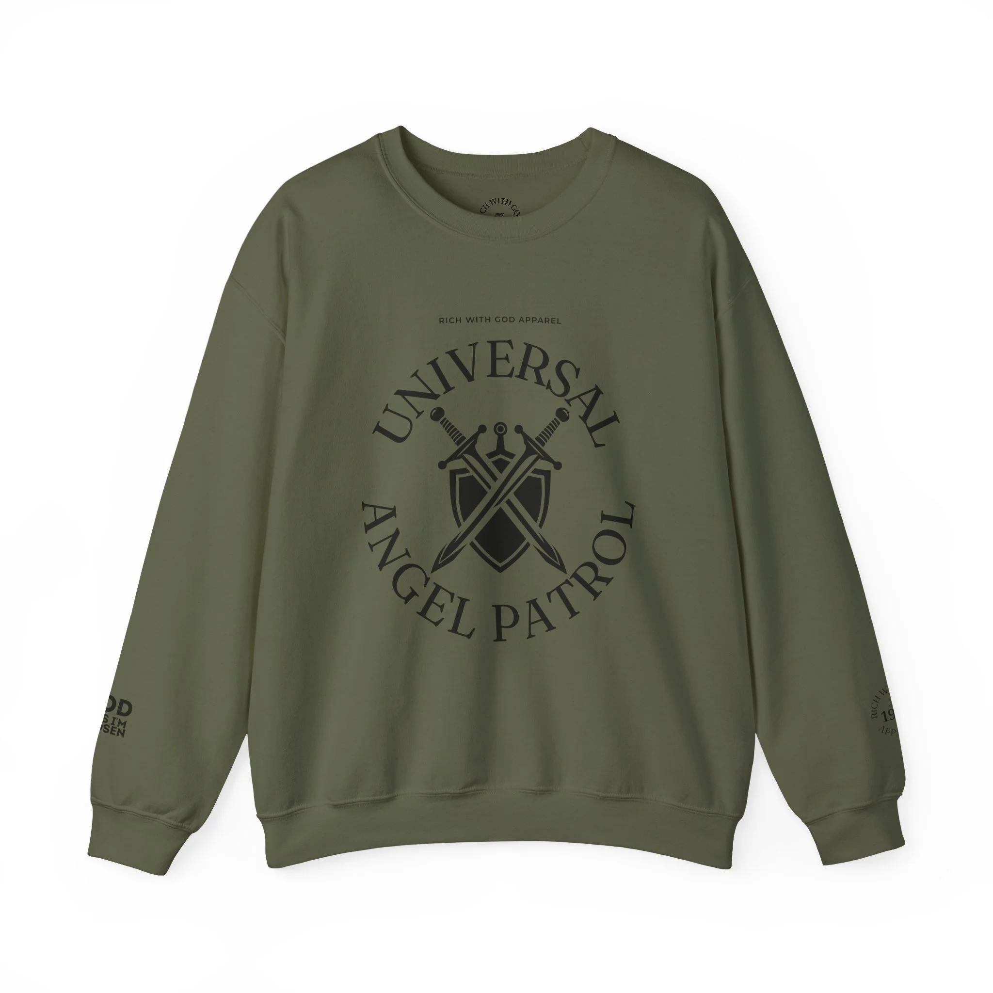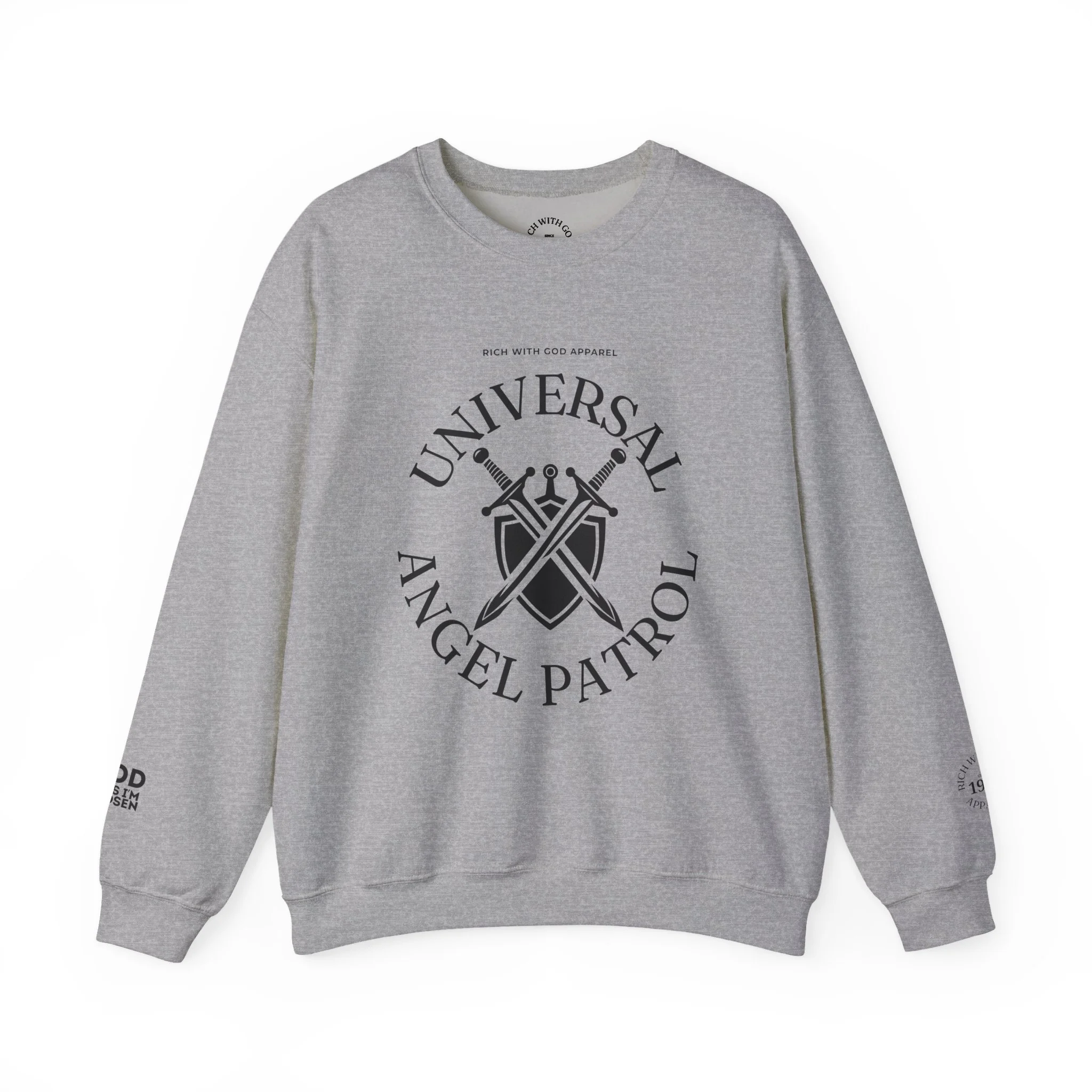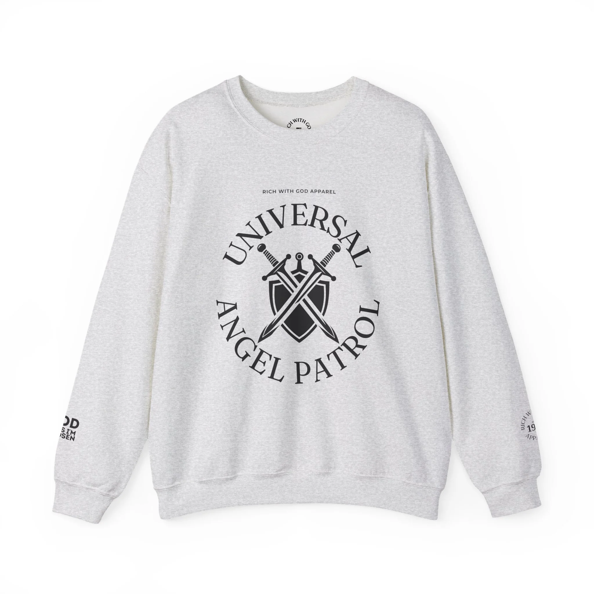 Step into divine alignment and elevated purpose with the Universal Angel Patrol Crewneck Sweatshirt, a standout piece from the Rich With God Apparel Collection. Featuring “Universal Angel Patrol” boldly on the front, this sweatshirt is a statement of faith, protection, and spiritual awareness. The back carries a powerful set of affirmations — I AM PROTECTED, I WALK WITH ANGELS, ANGELS SURROUND ME, DIVINE GUIDANCE, HEAVENLY WISDOM — reminding you of the guidance, protection, and divine support that surrounds you every day.