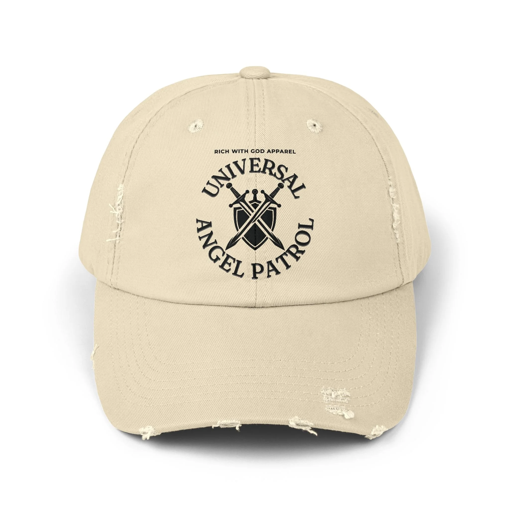 Step into divine protection and spiritual confidence with the Universal Angel Patrol Unisex Distressed Cap, a signature piece from the Rich With God Apparel Collection. This cap serves as a daily reminder that you are guided, protected, and surrounded by angels wherever you go. Its subtle, faith-inspired design blends effortless style with meaningful symbolism, making it a standout accessory for those walking in purpose and spiritual alignment.